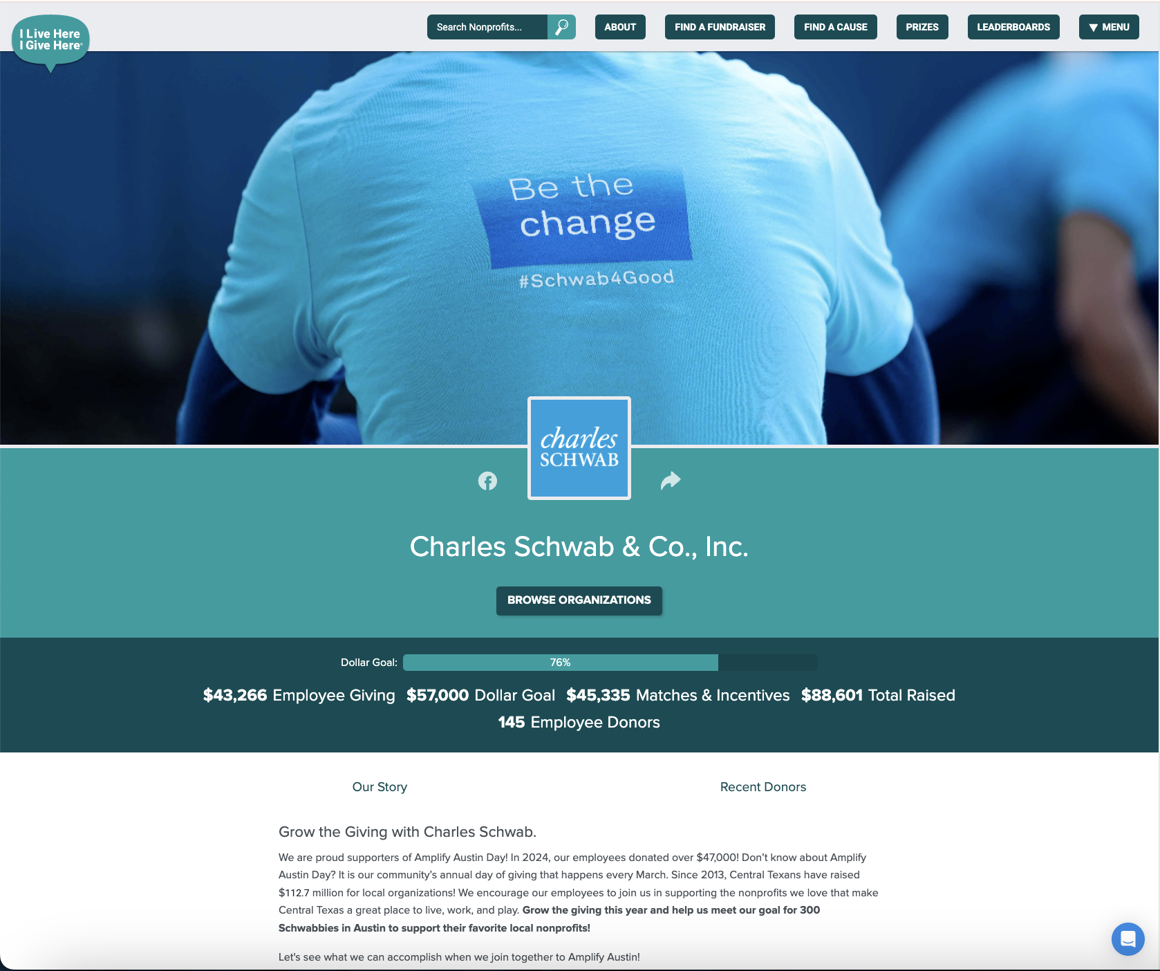 Give your employees a centralized location to support the community in which they live, work, and play. Creating a complimentary, branded Company Giving Page inspires local giving, encourages employee and customer loyalty, and offers real-time data about your team's impact.