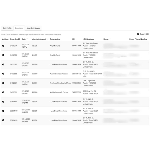 During Amplify Austin Day, you have access to a donation dashboard that that:
